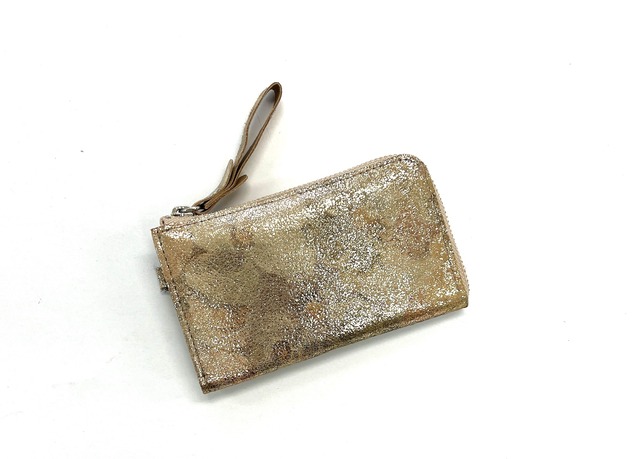 サスティナブルなコンパクトウォレット キラキラ花柄 ゴールド