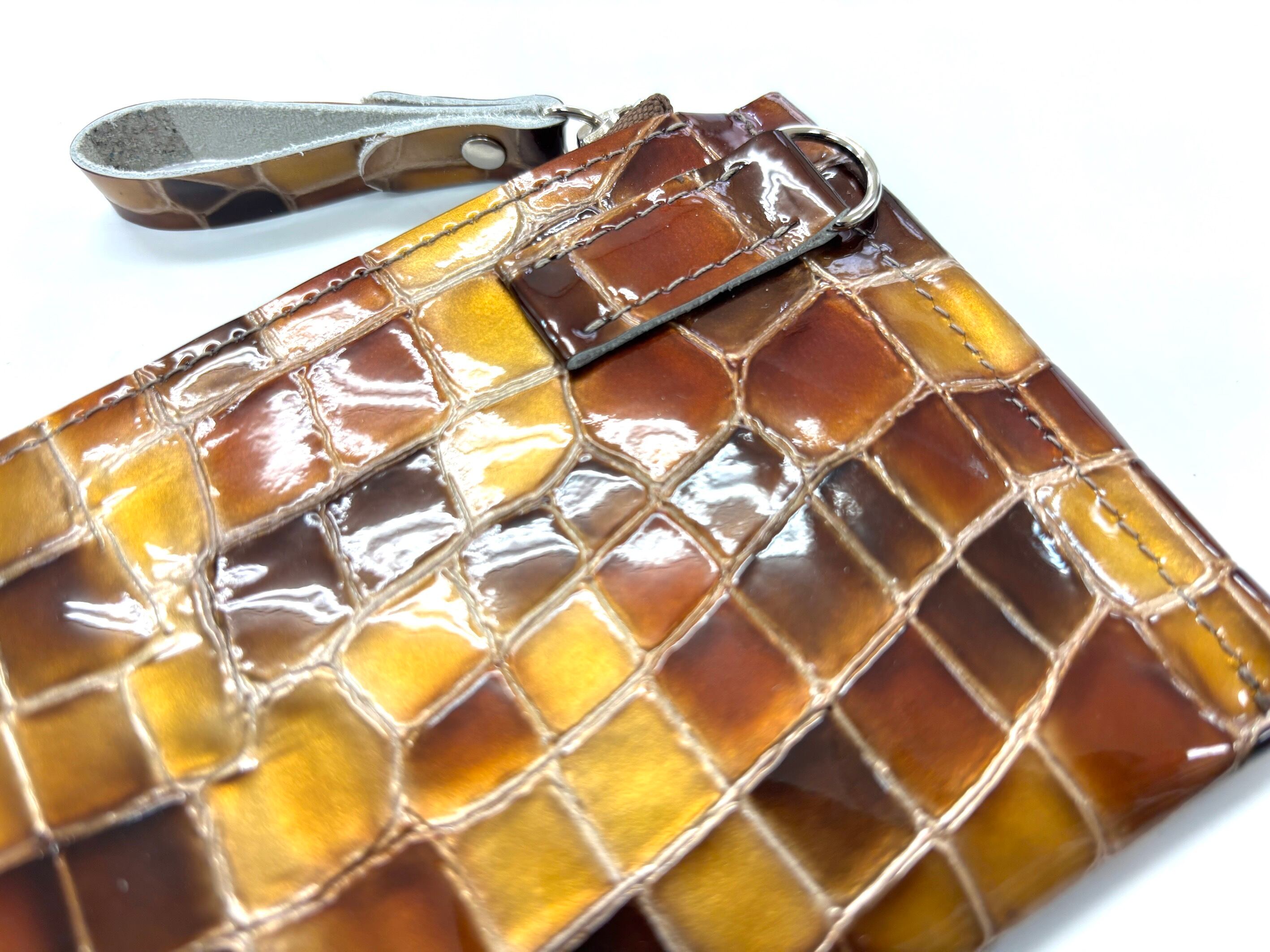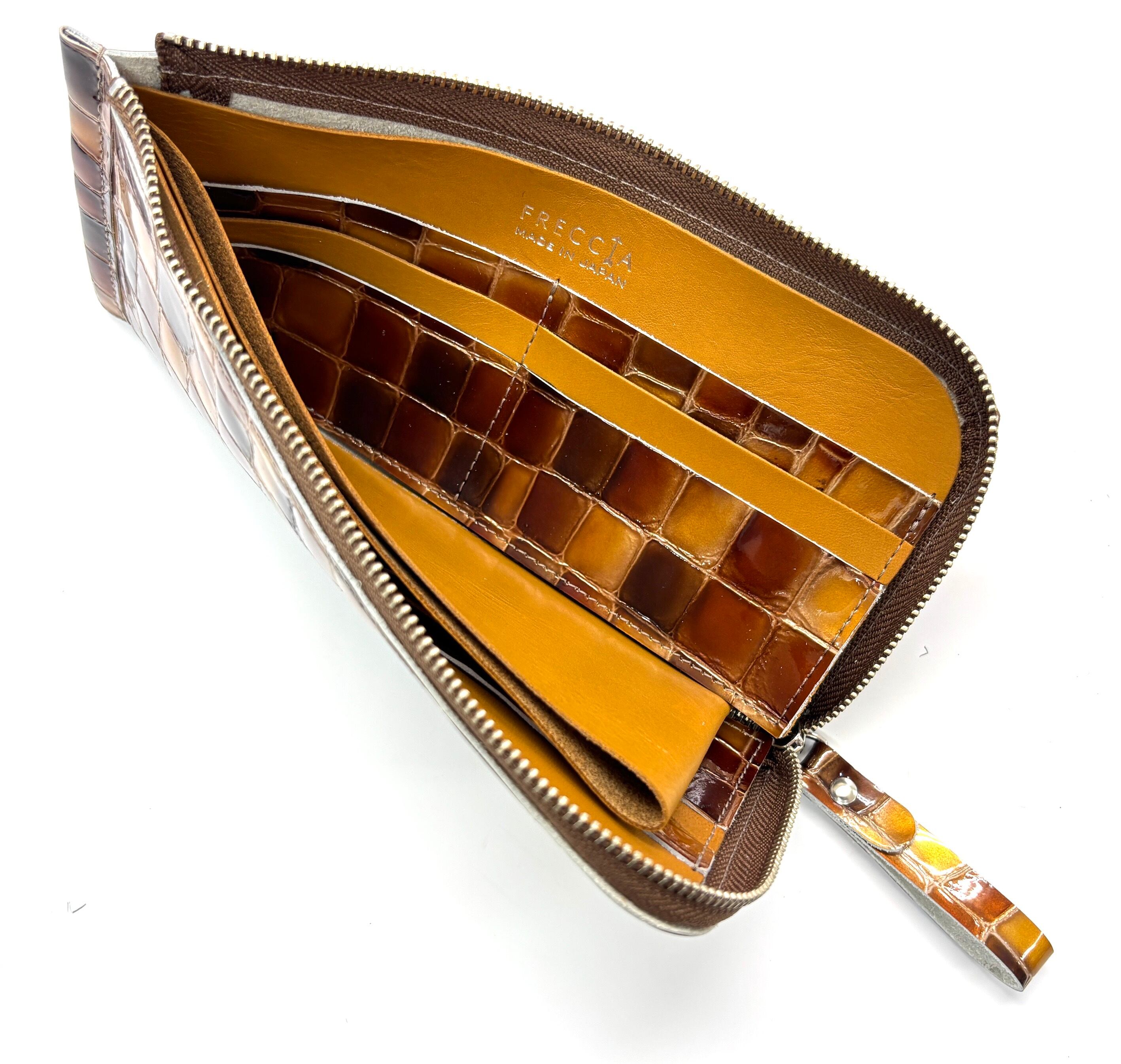 良質な本革を使用したサスティナブルなロングラウンドウォレット エナメル牛革 クロコダイル型押しシリーズです。イタリアならではの色使いとエナメルの光沢感がとても素敵です。シンプルでありながらも上品さを演出します。シックな色から明るいお色までお選びいただけ、普段使いから特別なシーンまで幅広く活躍するアイテムです