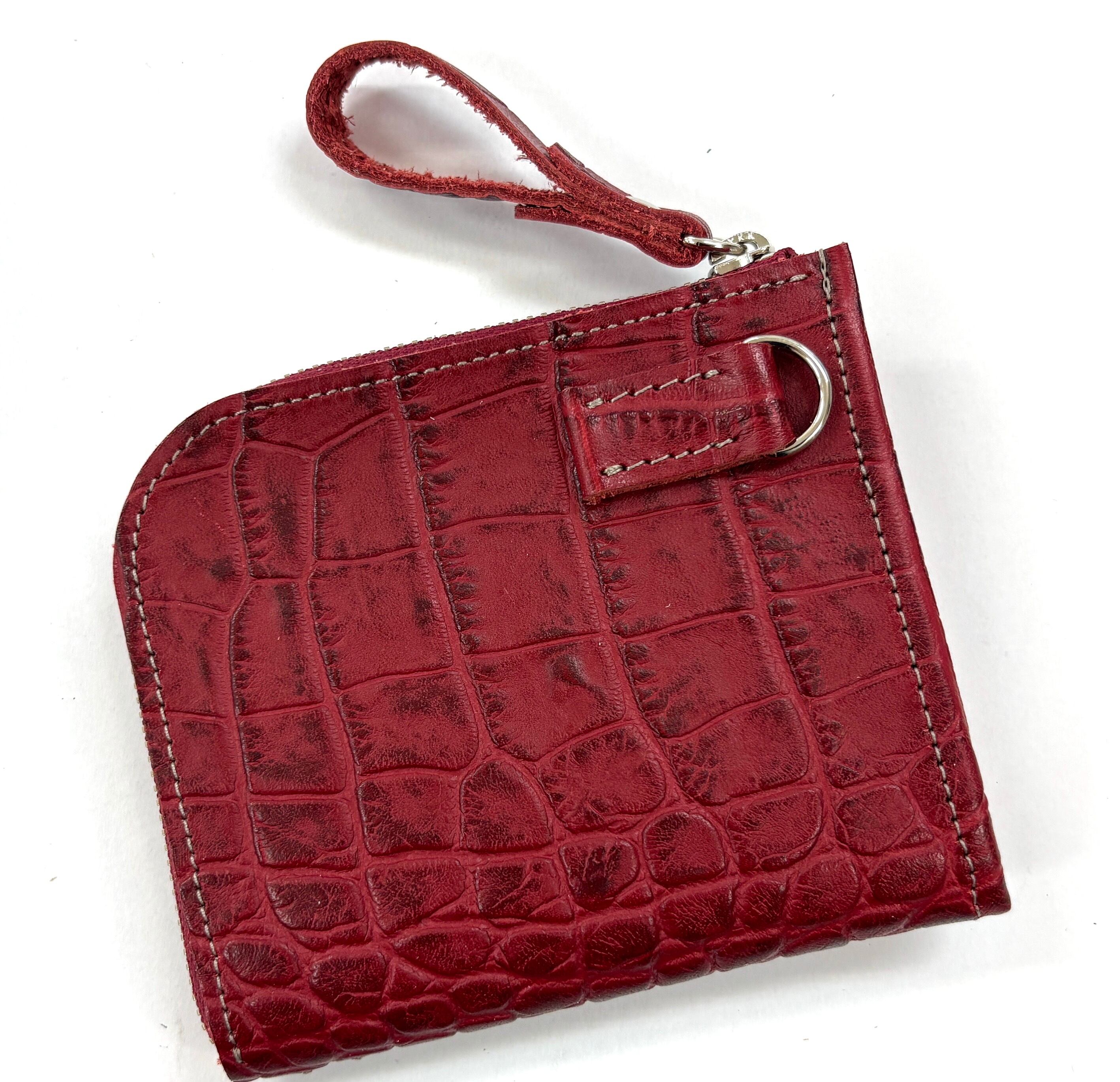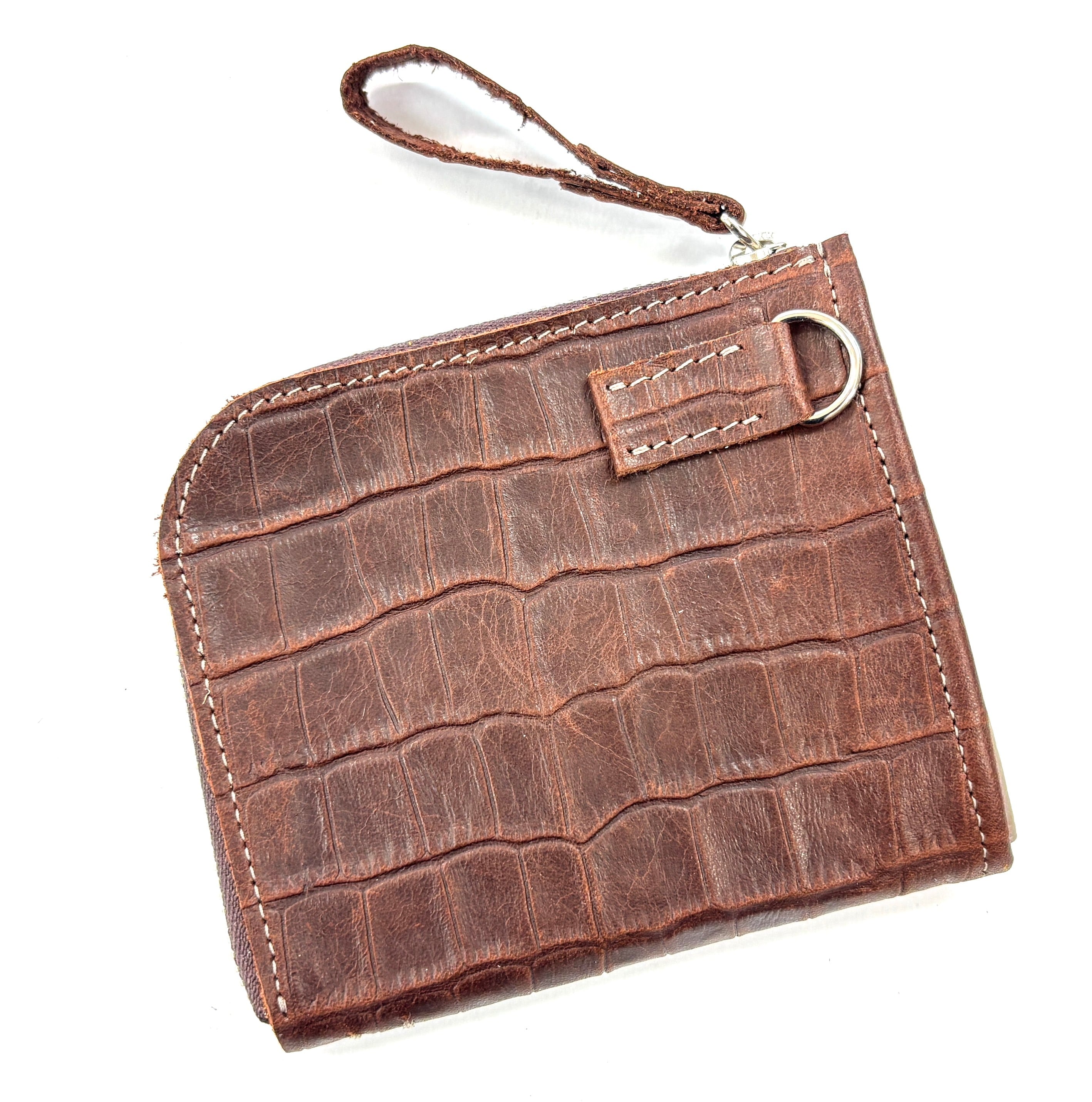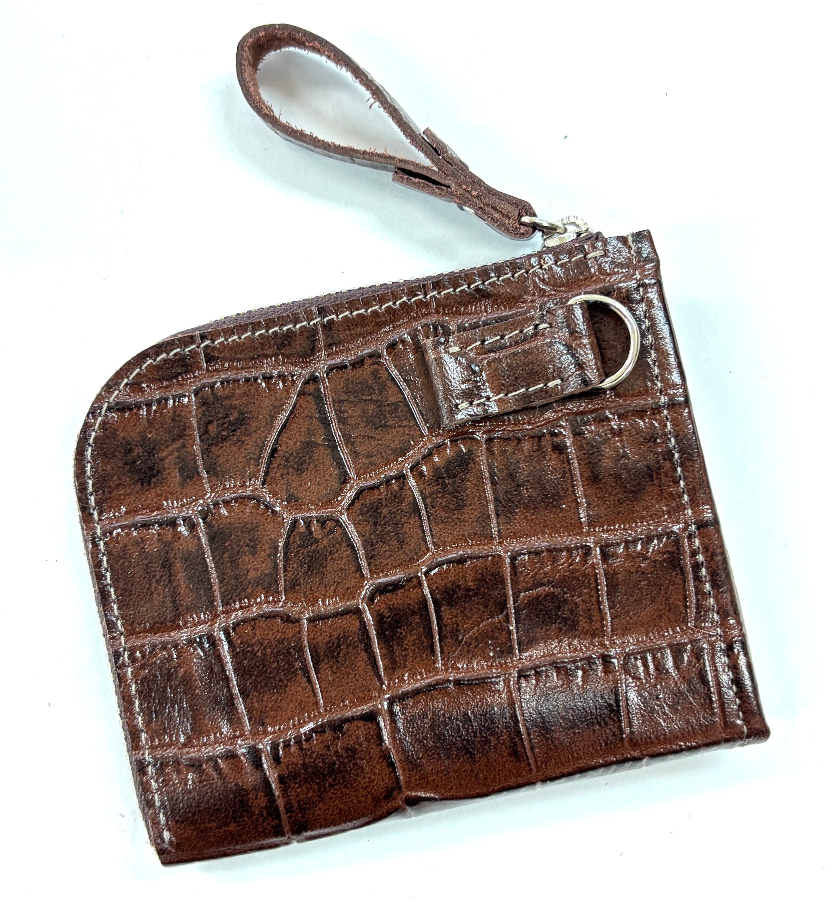 良質な牛革にクロコダイルの型押しが施されたミニラウンドウォレットです。