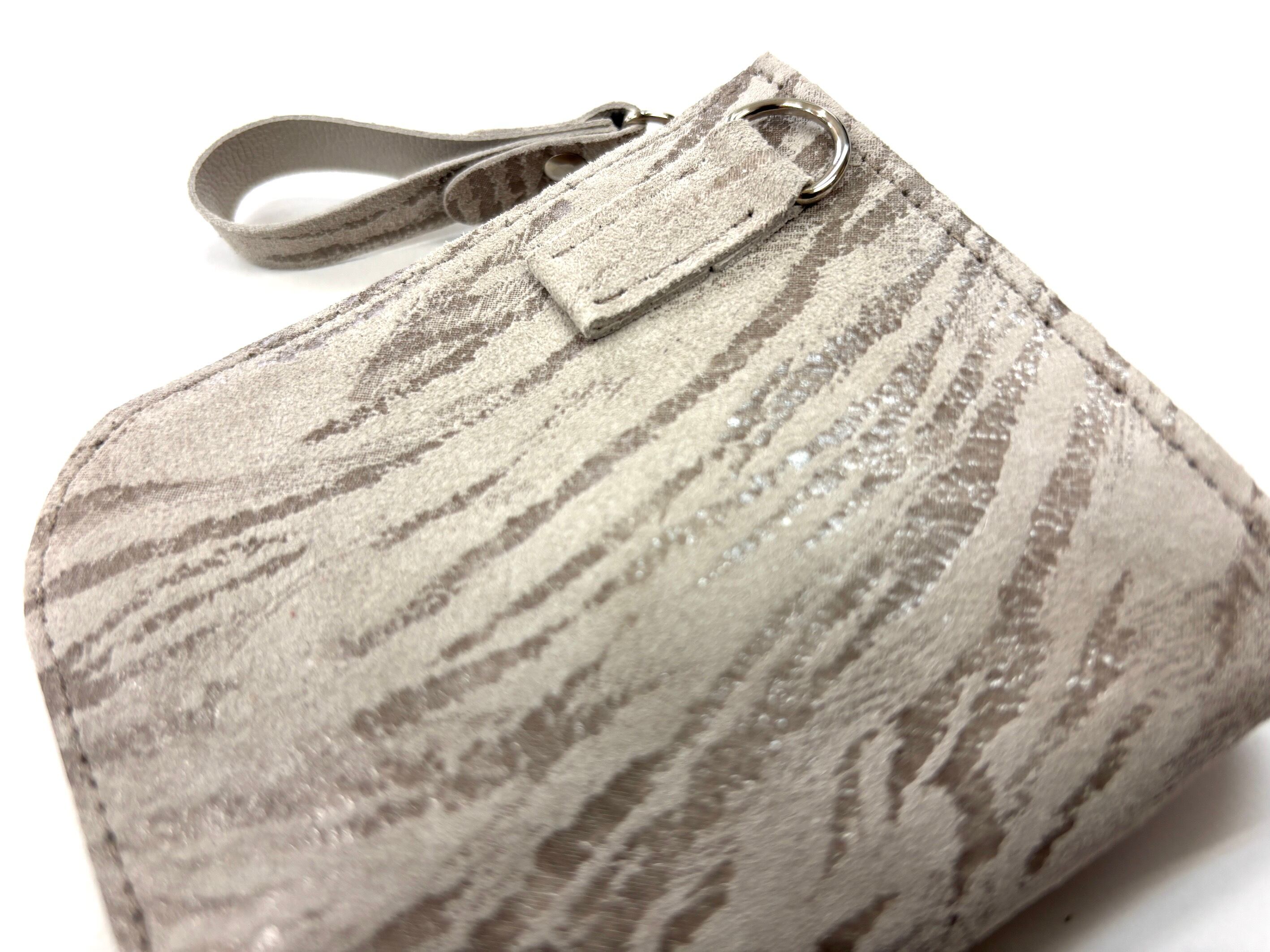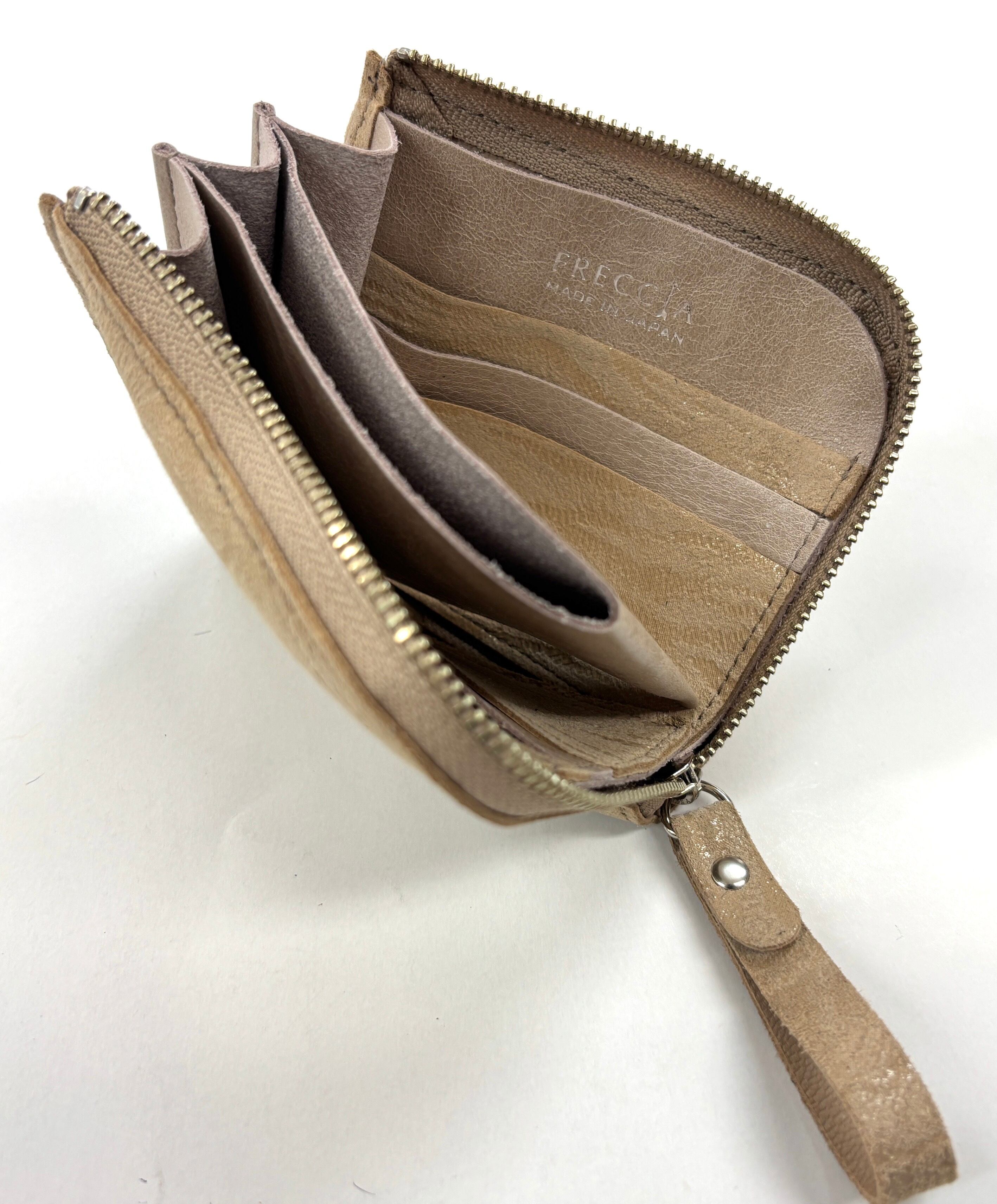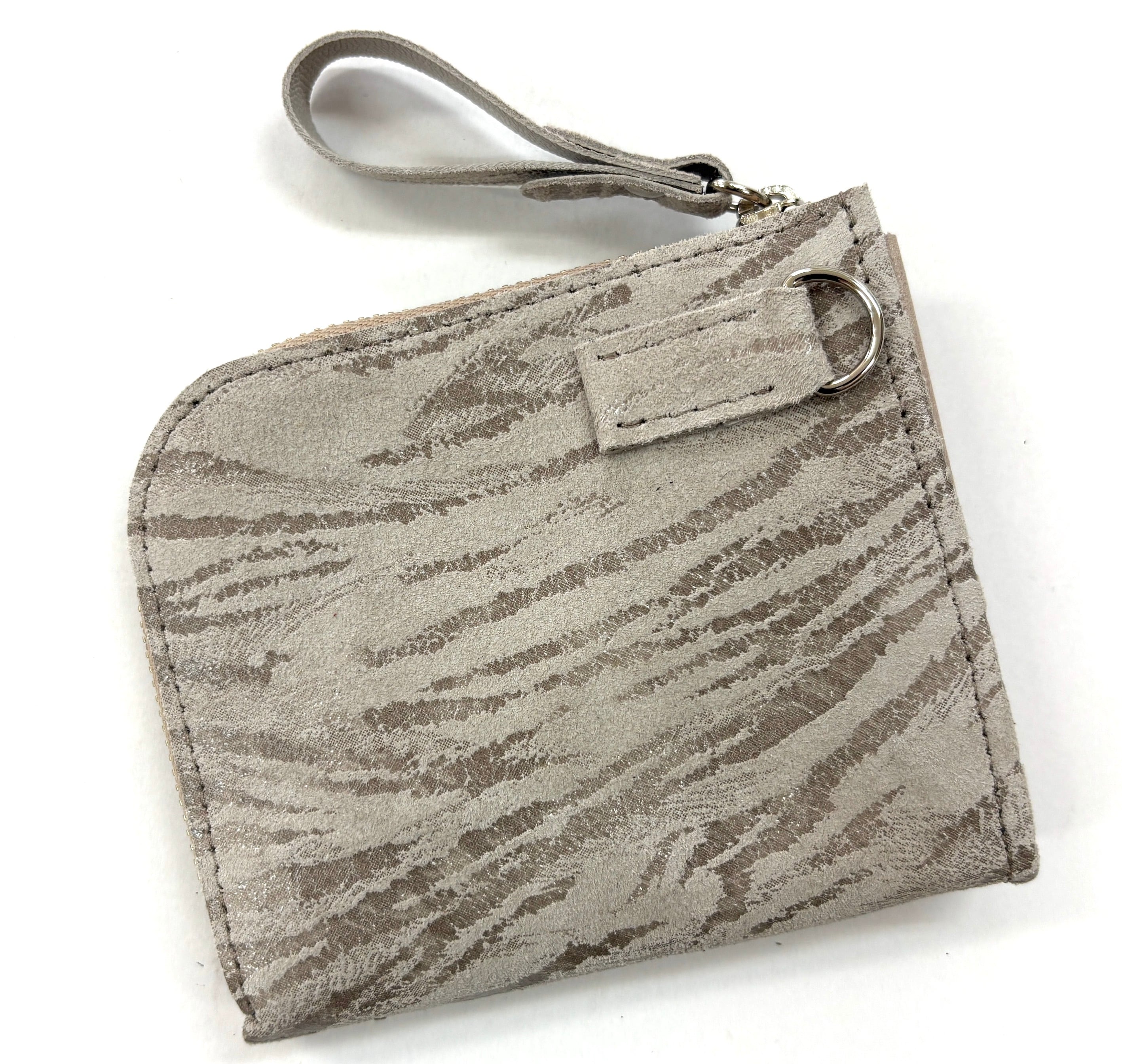 良質な牛革のスエード面に特徴のあるプリントを施したミニラウンドウォレットです。