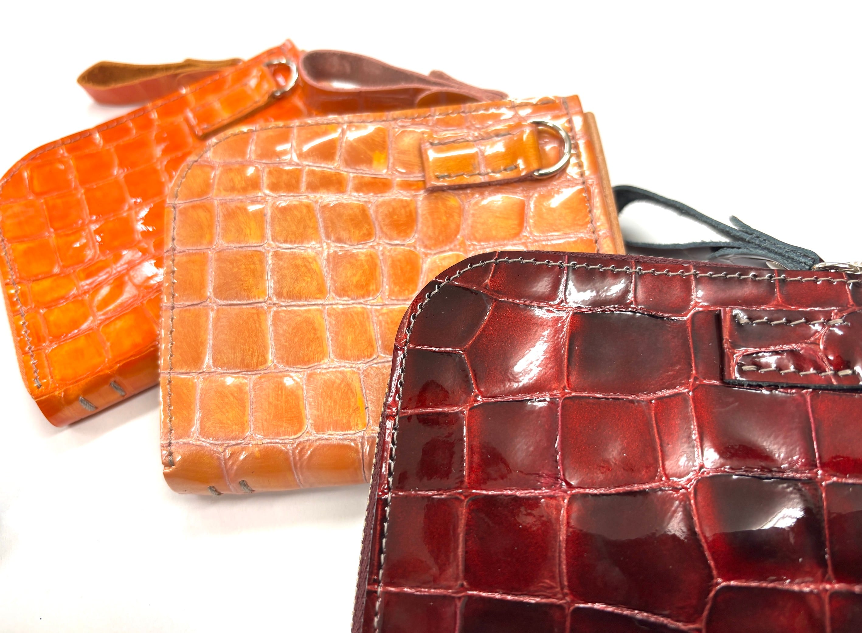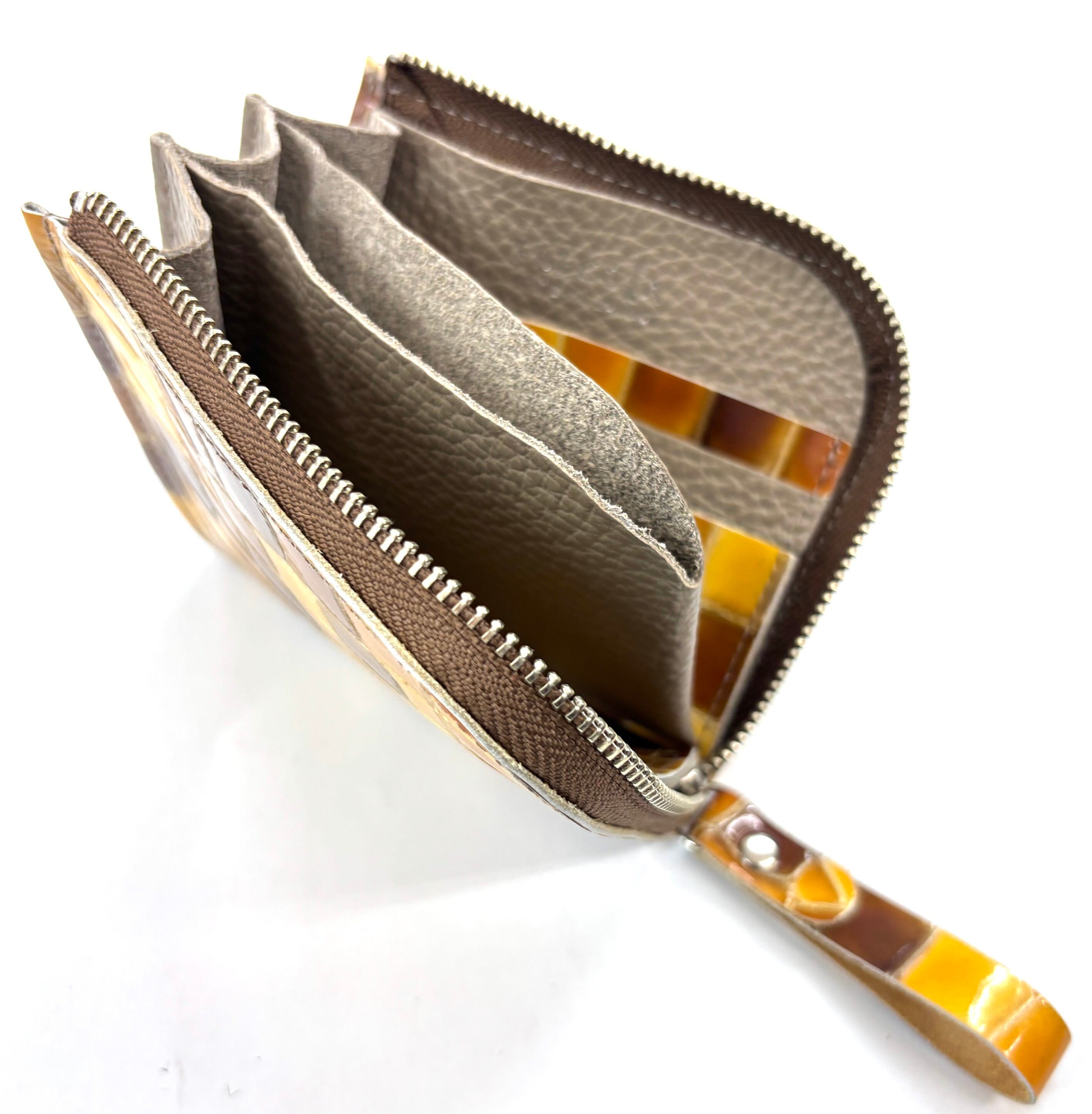 良質な牛革の表面にモザイクのようなエナメル加工を施したミニラウンドウォレットです。