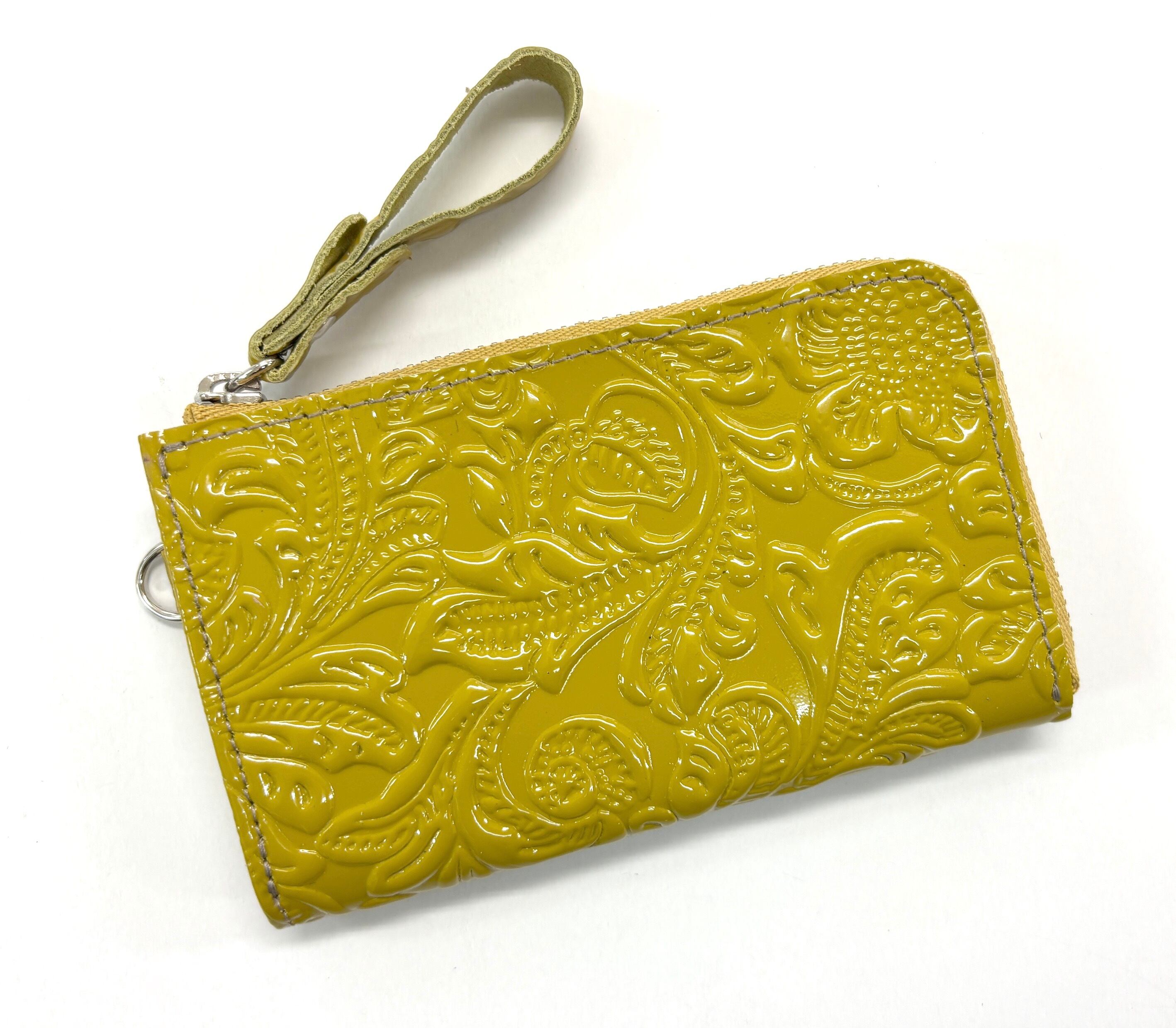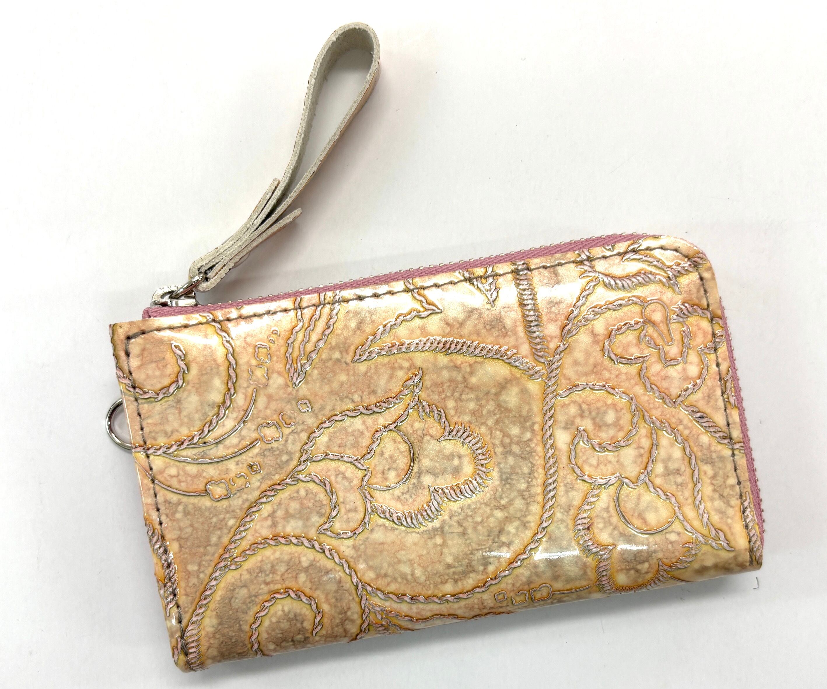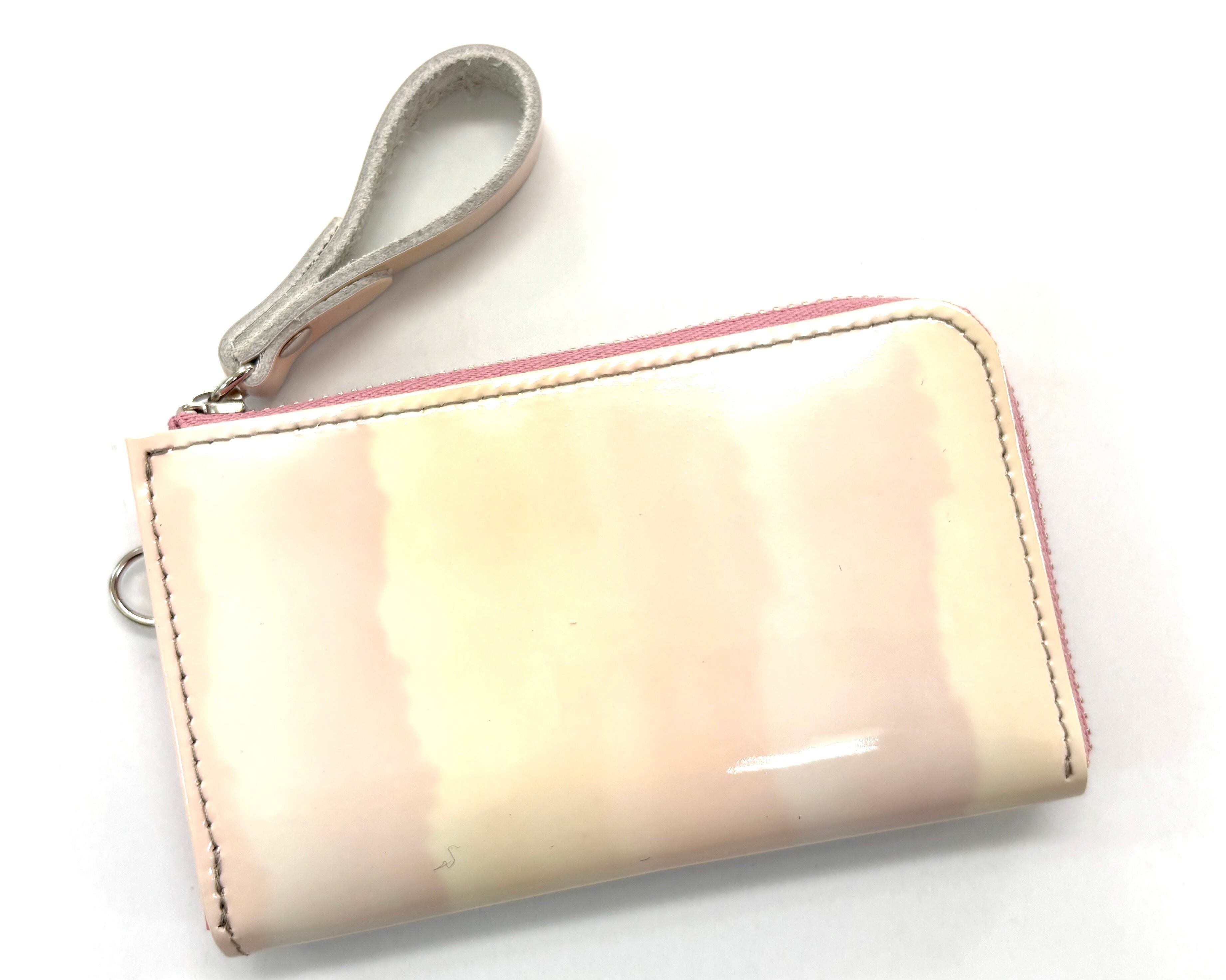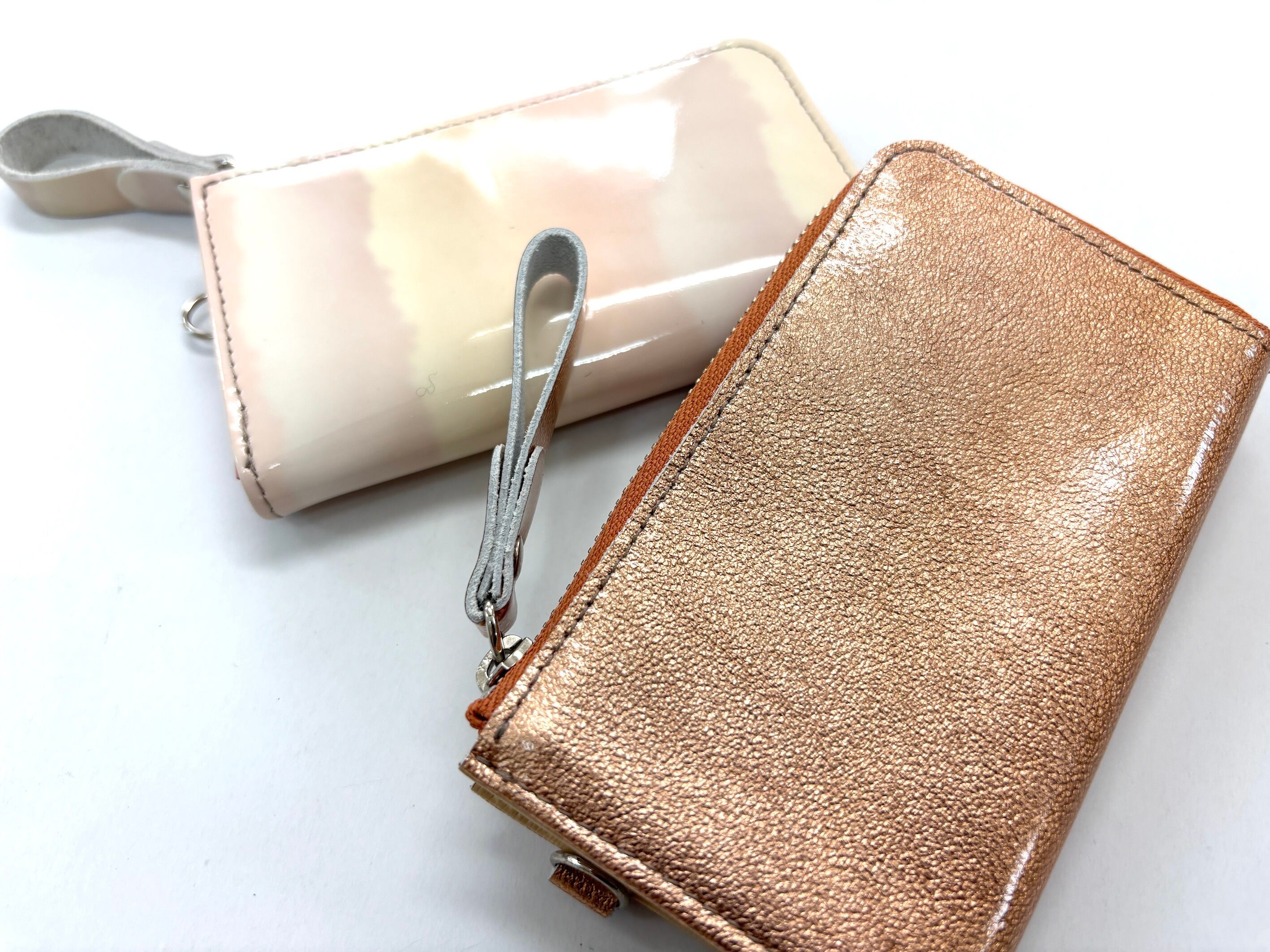 表面にエナメル加工が施された革です。模様の型押し、グラデーションカラー等珍しい革を使用しております!