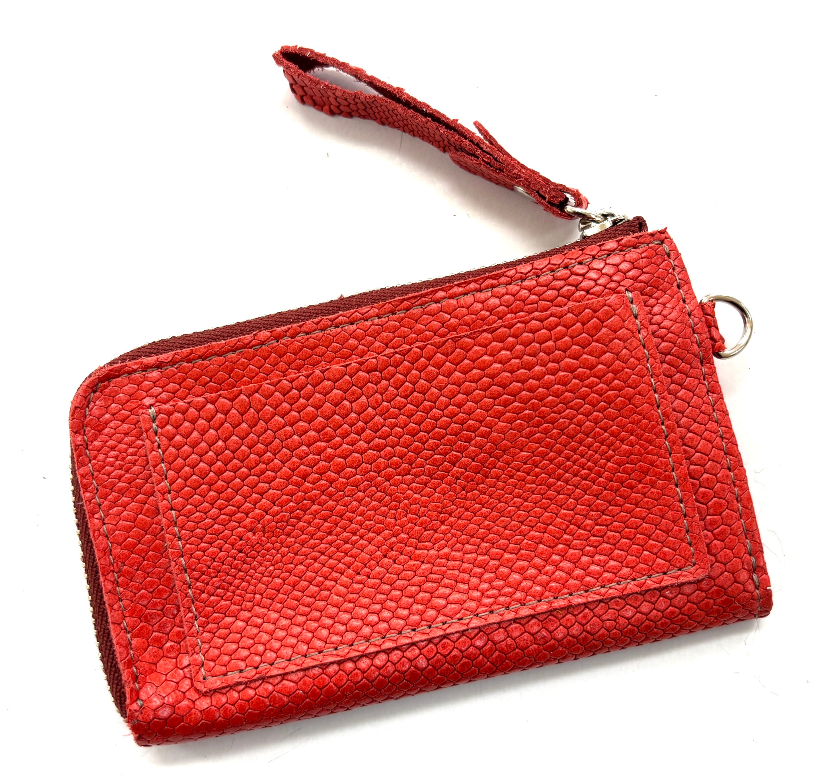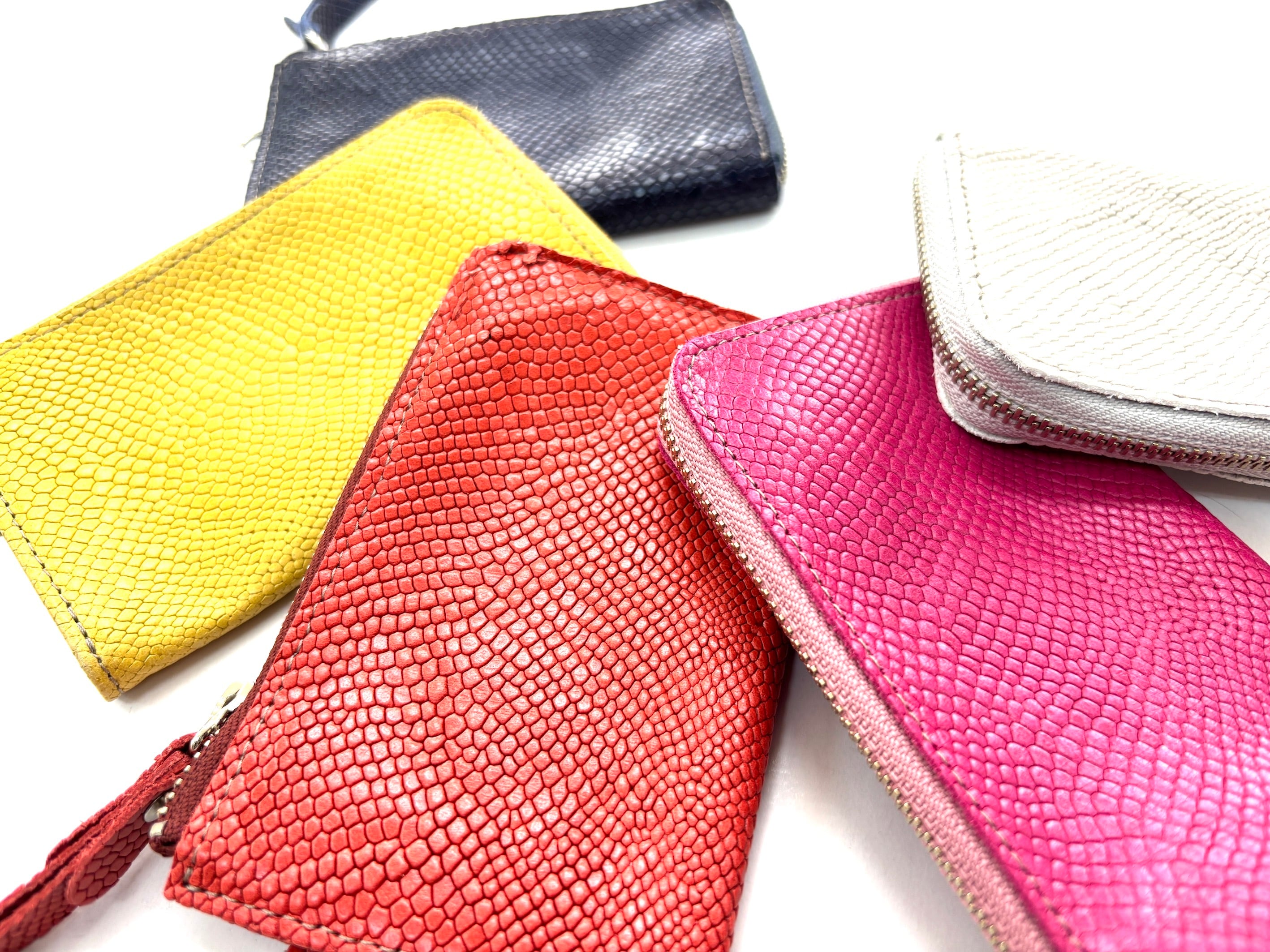 凹凸感のあるスネーク柄の型押しが細かく施された革を使用しております。