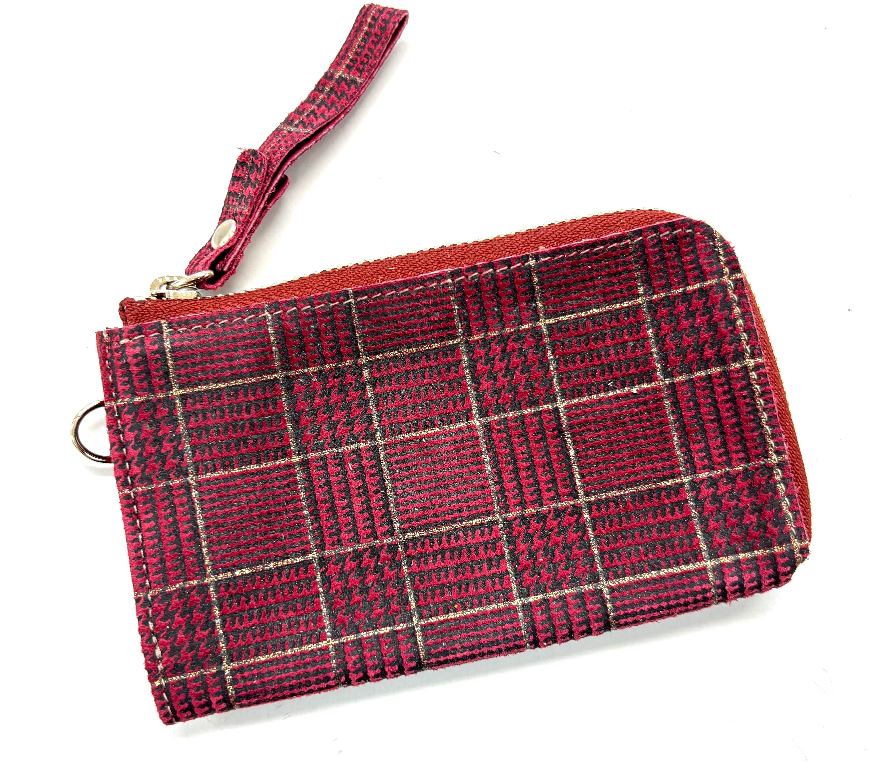赤・グレー はソフト革にプリント、 黒はチェック柄が型押しされています。