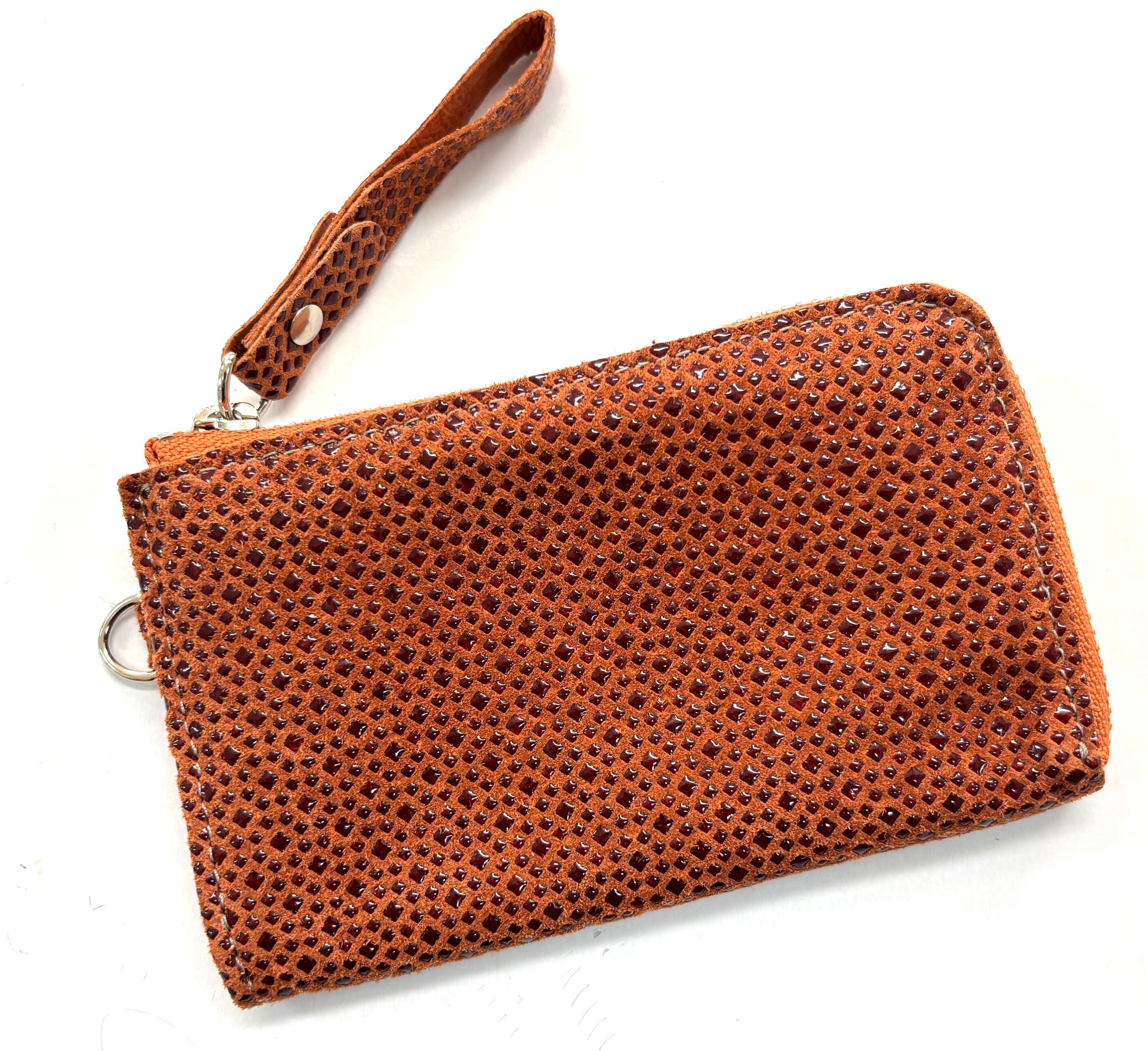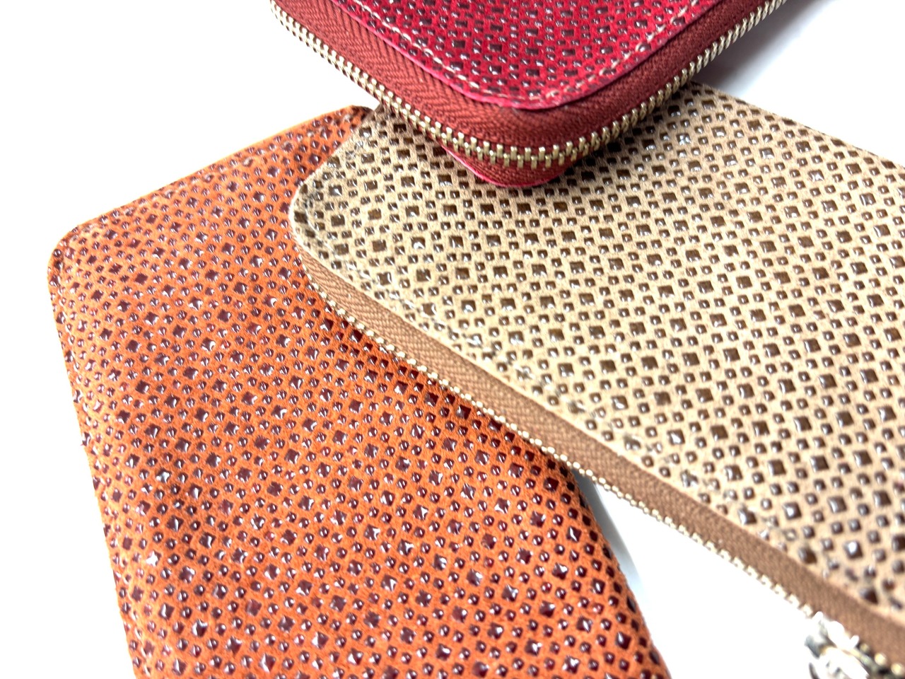 凹凸感のあるデザインです。印伝風の革に仕上がっております。