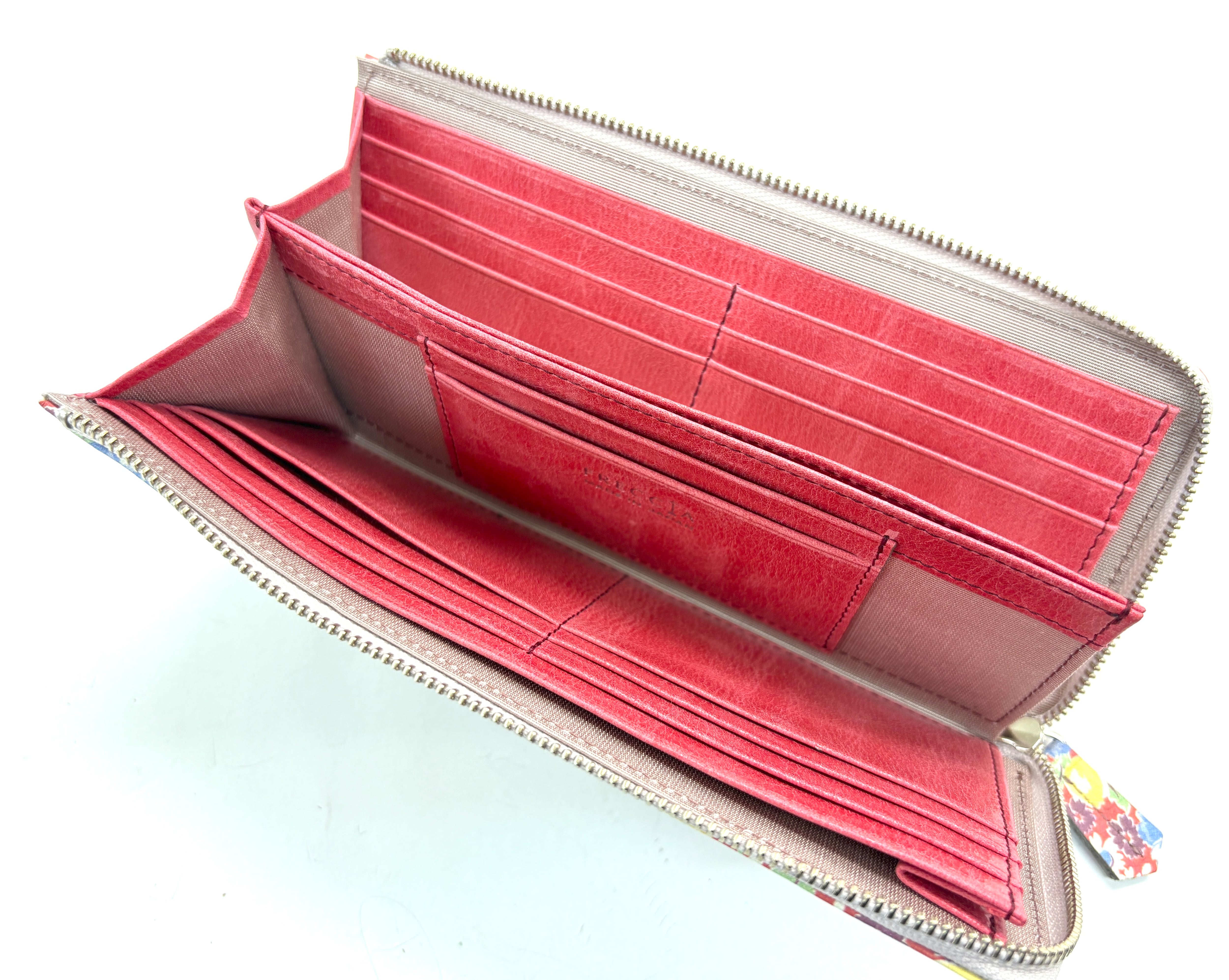 内側にはカードポケットが14か所と、使い勝手の良いオープンポケットが付いています。オープンポケットには小銭を収納可能で、お財布を開けた瞬間に小銭がぱっと見える設計となっており、大変使いやすい造りが魅力です!また、お札は折らずにそのまま収納できるので、整理整頓がしやすいです。