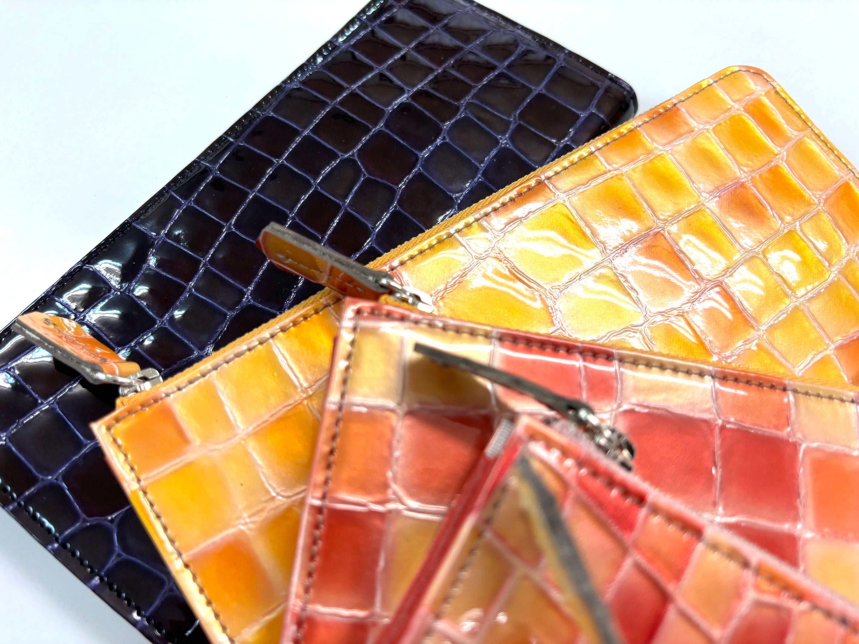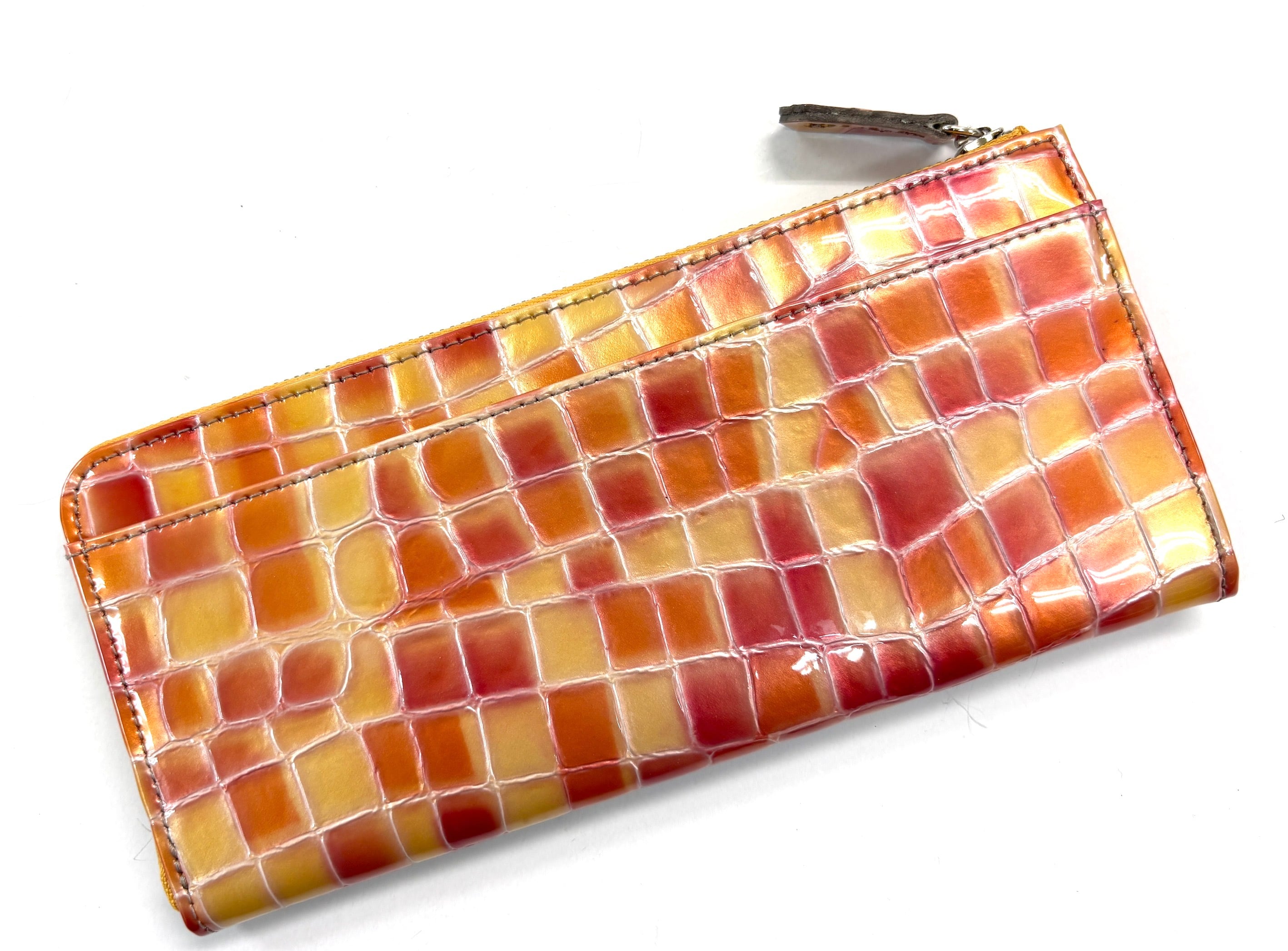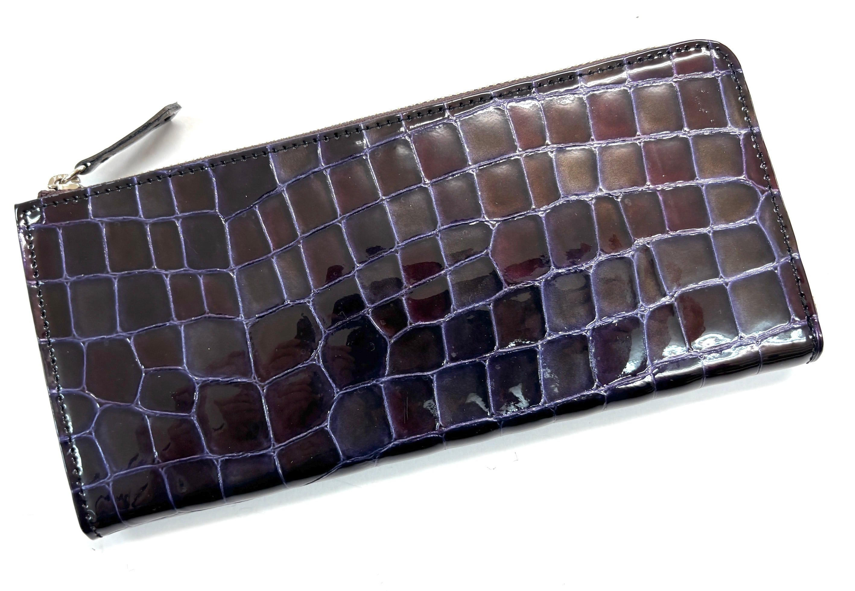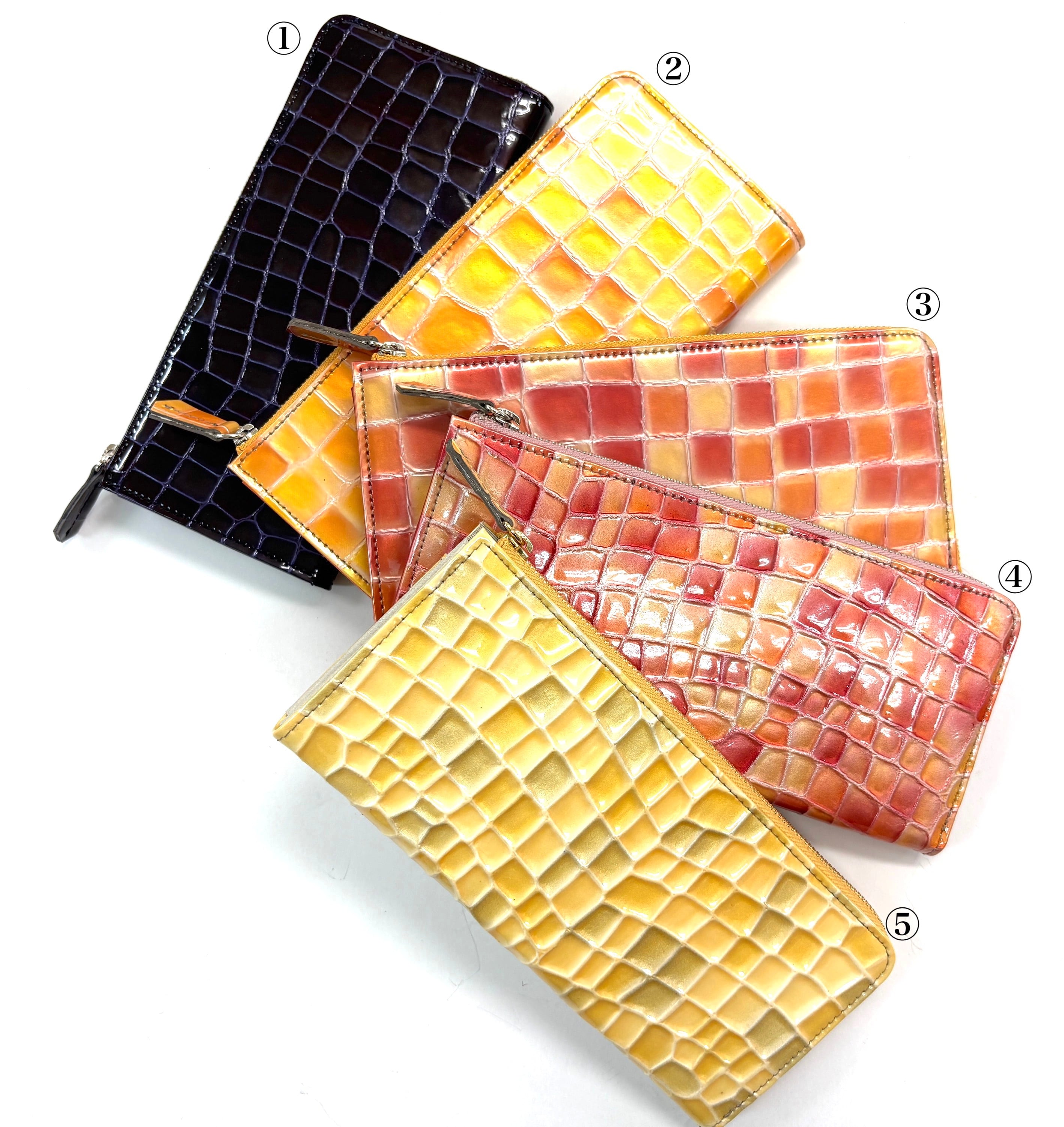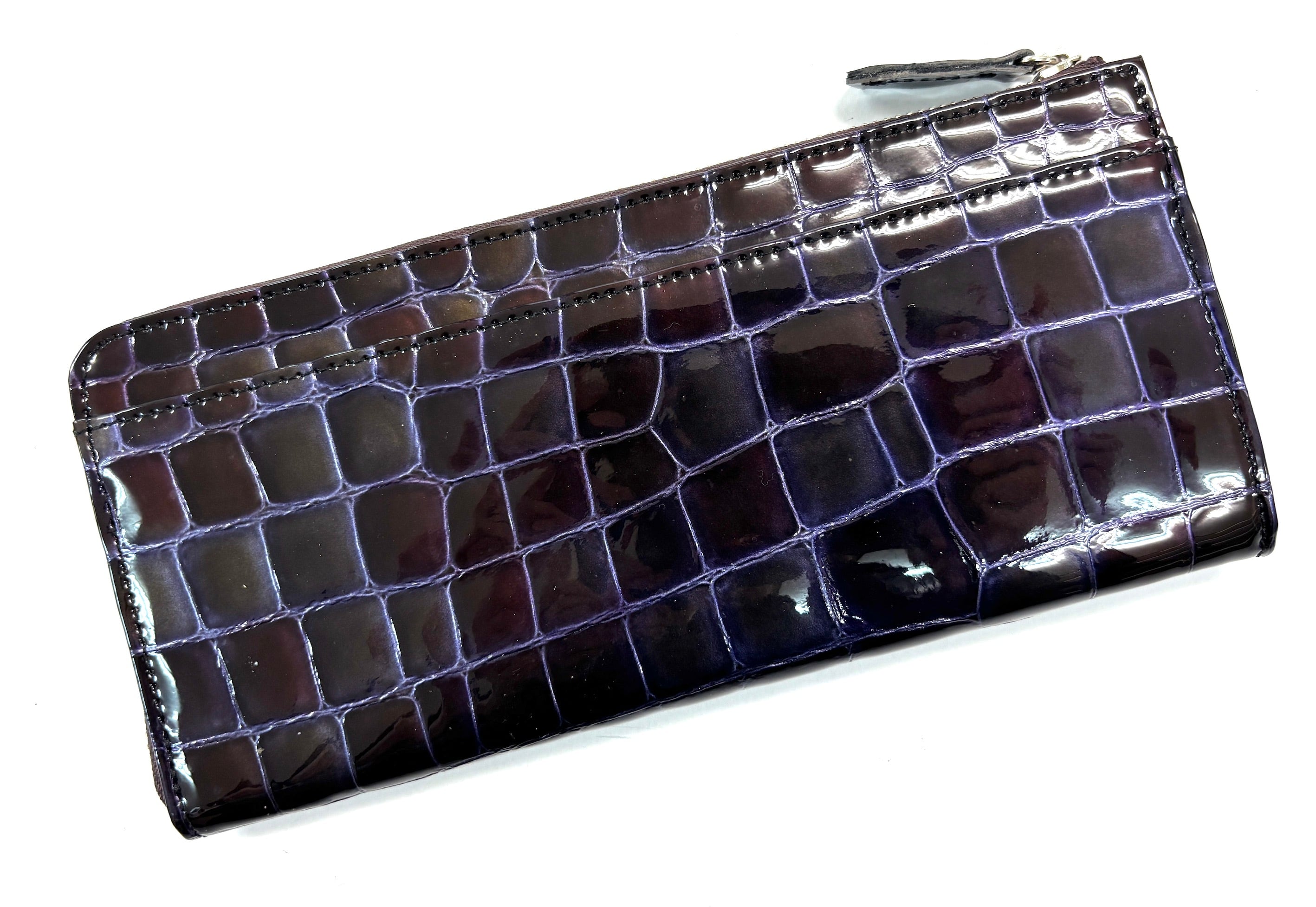新柄登場!! サスティナブルなロングラウンドウォレット クロコ型押しエナメル革 2