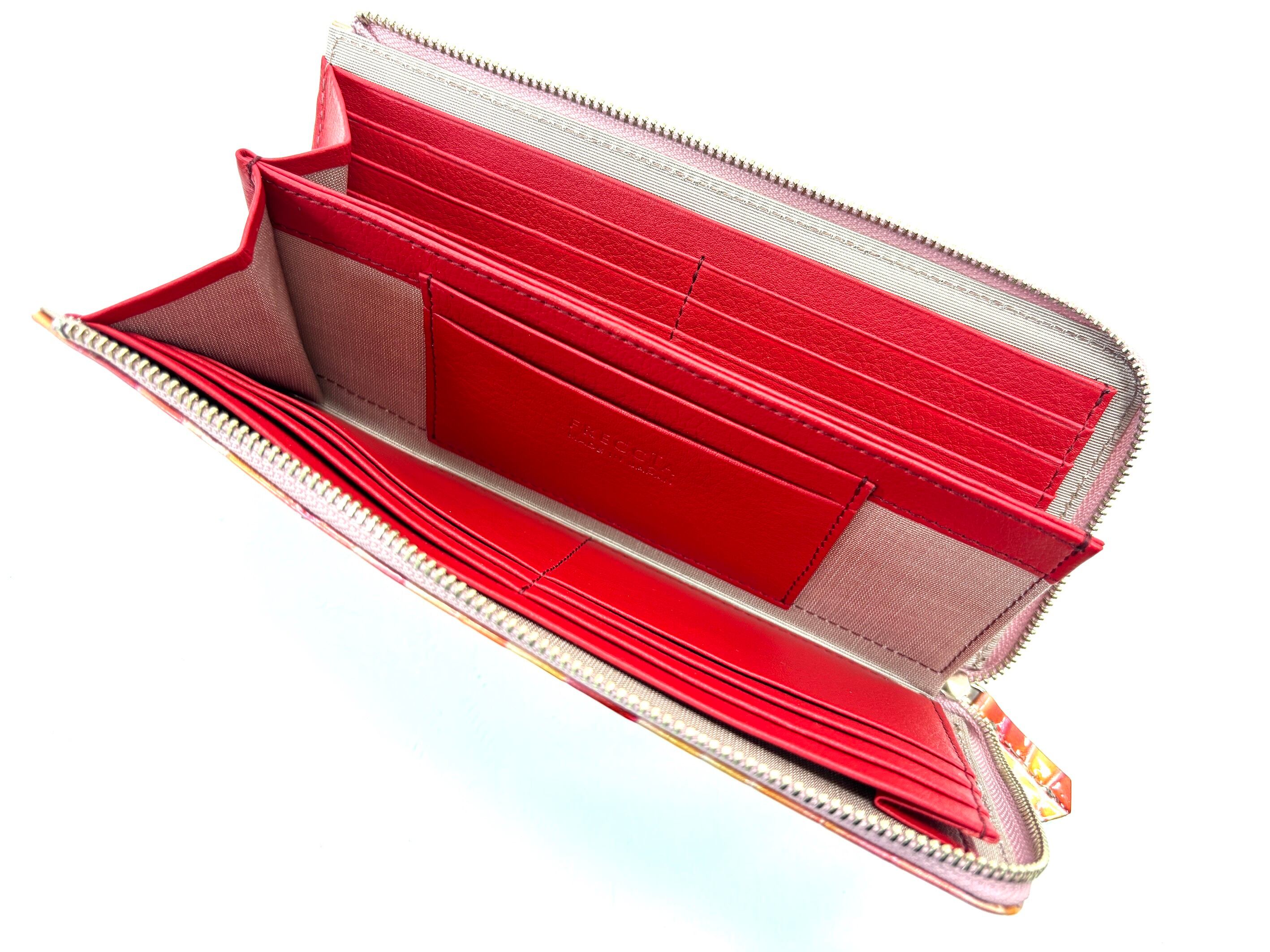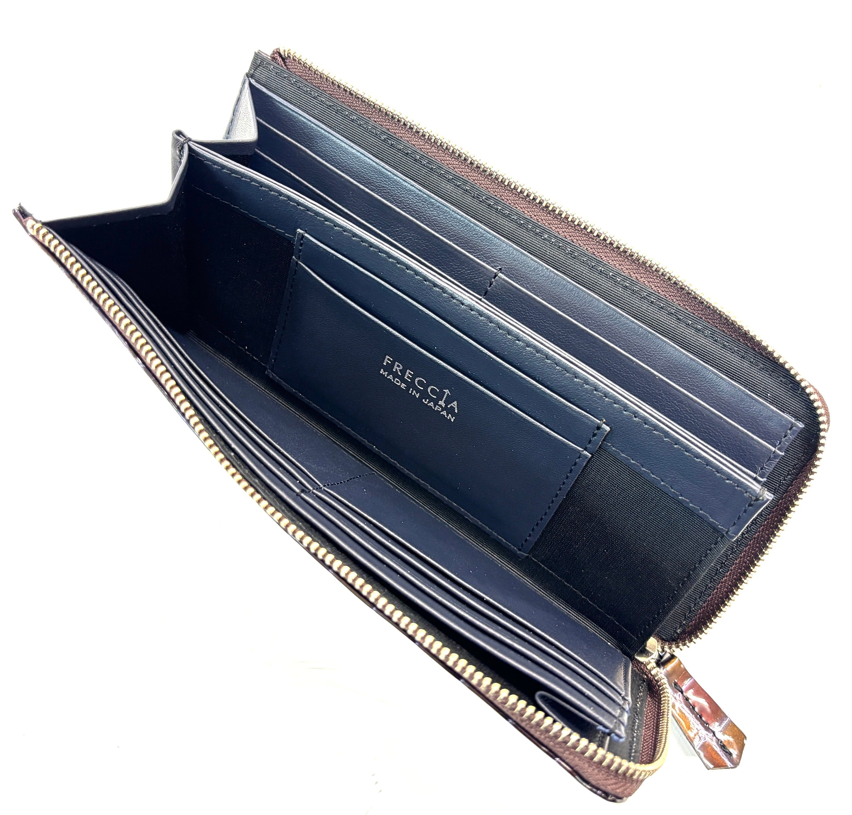 内側にはカードポケットが14か所と、使い勝手の良いオープンポケットが付いています。オープンポケットには小銭を収納可能で、お財布を開けた瞬間に小銭がぱっと見える設計となっており、大変使いやすい造りが魅力です!また、お札は折らずにそのまま収納できるので、整理整頓がしやすいです。
